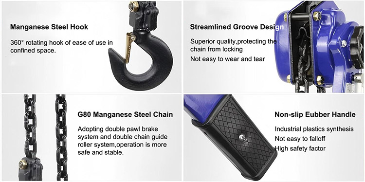 2. 표준 리프팅 높이: 1.5m, 3m, 6m 10m, 20m 등(단일 체인 길이). 체인 길이를 맞춤 설정할 수 있습니다.