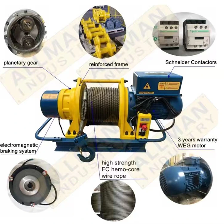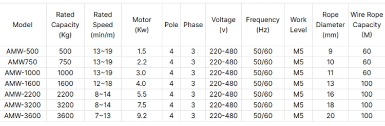 우리는 전선 로프 윈치를 생산하는 자체 공장을 보유하고 있으며 용량은 500kg, 750kg, 1000kg, 1600kg, 2톤, 3톤, 5톤 및 10톤을 포함합니다. 전원 전압은 고객이 선택할 수 있도록 220V, 380V, 440V일 수 있으며 맞춤형으로 허용될 수도 있습니다.