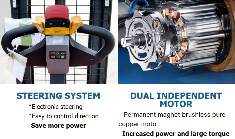 BaiYi 완전 전기 스태커는 충전식 배터리 또는 AC 모터를 사용하여 유압 시스템을 구동하여 부하를 들어 올립니다. 작업자는 제어 핸들을 사용하여 팔레트 스태커를 이동하고 화물을 들어 올립니다. 이로 인해 무거운 물체를 자주 들어 올리고 이동해야 하는 자재 취급 작업에 없어서는 안될 부분입니다.