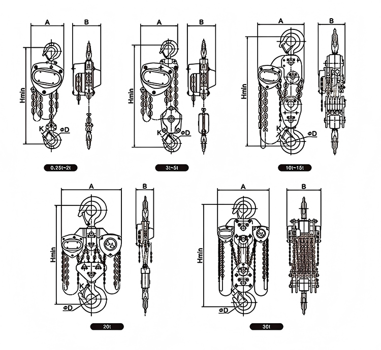 작동하기 전에 들어 올려진 물품의 무게가 HSC 5T 체인 호이스트의 정격 하중 5톤을 초과하지 않는지 주의 깊게 확인하십시오. 동시에 제동 부품과 리프팅 체인이 변형되거나 비틀어졌는지 확인하십시오. 빈 기계 시험 운전을 실시하여 이상 없이 원활하게 작동하는지 확인하십시오.