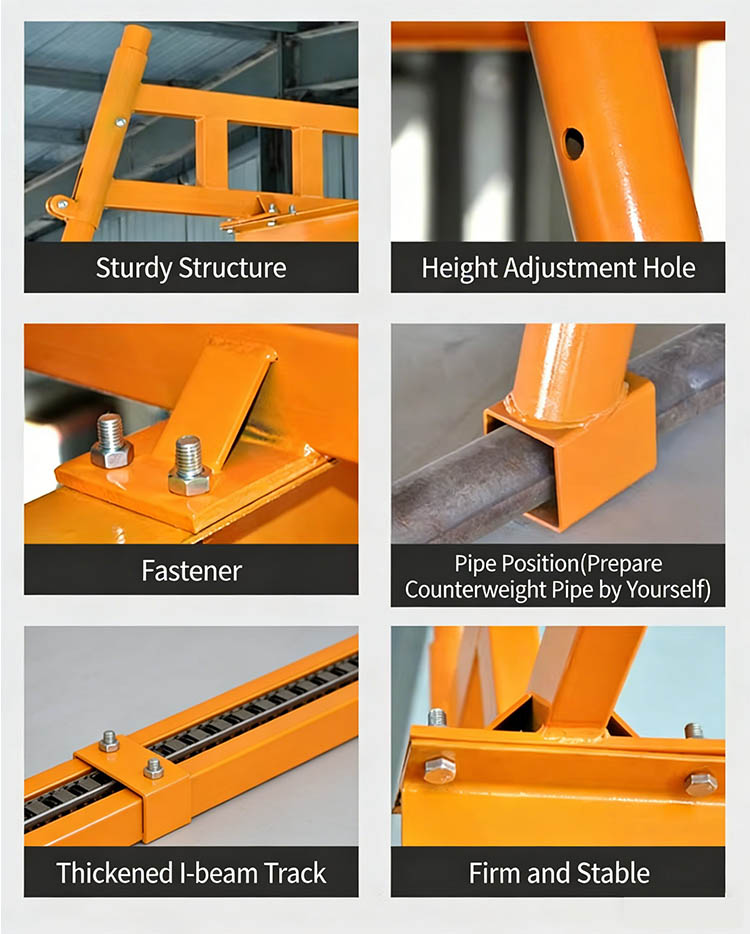 균형추 설치:장비 무게 중심의 안정성을 보장하고 기울어짐을 방지하기 위해 기둥의 파이프 관통 지점에 균형추 파이프(사용자 제공)를 추가합니다.